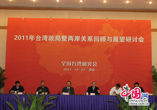 由全国台湾研究会主办的“2011年台湾政局暨两岸关系回顾与展望研讨会”27日上午在北京举行。中国网 许玉燕 摄