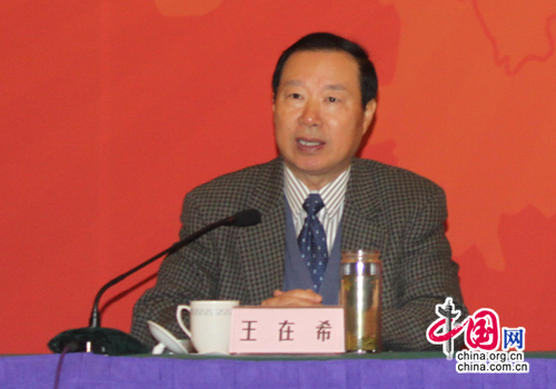 海峡两岸关系协会副会长王在希出席“2011年台湾政局暨两岸关系回顾与展望研讨会”并致辞。中国网 许玉燕 摄