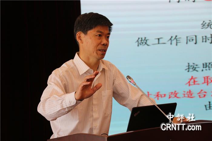中评社岳阳5月23日电(记者 张爽)全国台湾研究会2019年学术年会5月22在湖南省岳阳市举行,本届年会主题为“新时代和平统一的理论与实践”,四十余位大陆涉台学者出席本次研讨会,海峡两岸关系研究中心主任、研究员仇开明、中国人民大学两岸关系研究中心主任、教授王英津、中华全国台湾同胞联谊会研究室副主任任挥、厦门大学台湾研究中心副主任、教授唐永红、清华大学台湾研究院台资企业研究中心主任、副教授李保明等五位学者做第一节的主题发言。