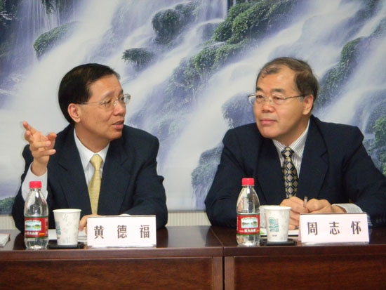 应我会邀请,台湾民主基金会执行长黄德福、副执行长蔡昌言、台湾政治大学教授朱新民和台湾大学教授彭锦辉一行于6月18日来会交流,双方就国民党大陆政策走向、ECFA“公投”、台湾“五都选举”等议题进行了深入探讨。全国台湾研究会执行副会长兼秘书长周志怀主持座谈,中华文化发展促进会秘书长郑剑、中国人民大学国际关系学院教授黄嘉树等专家参加了研讨。